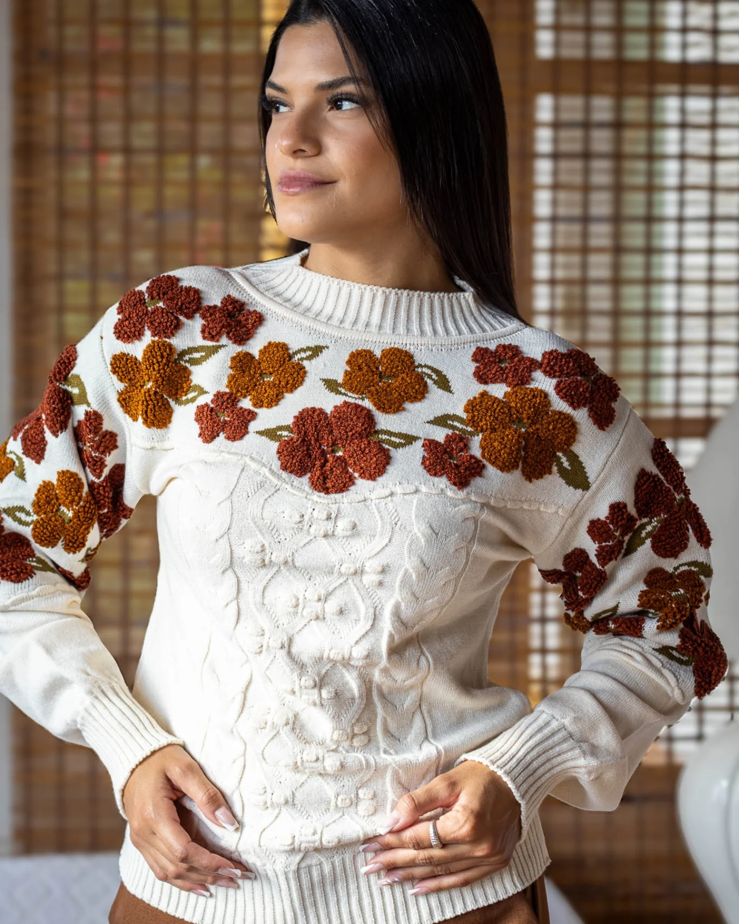 Blusa Modal Zínia: Delicadeza e Estilo Floral para o Outono Inverno 2025
