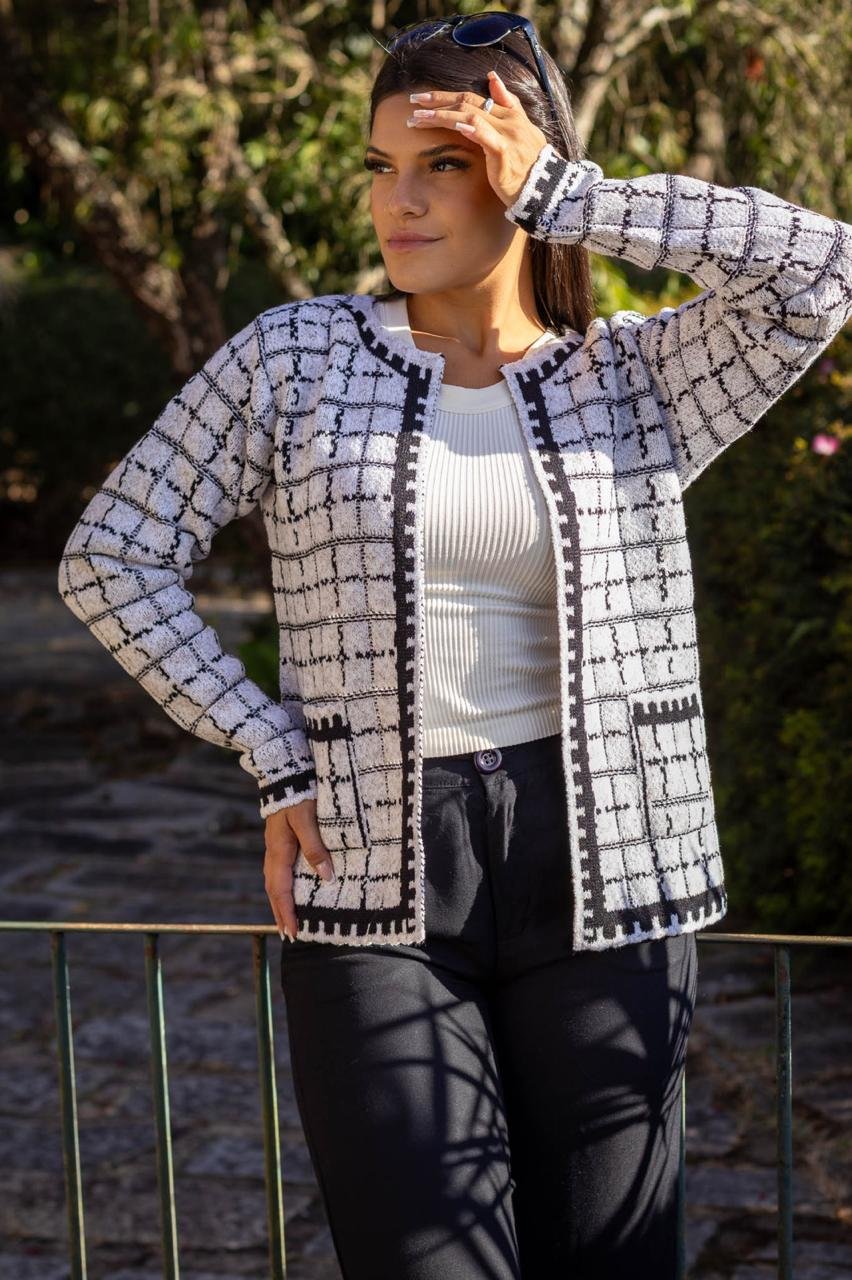 Com uma padronagem clássica e um acabamento contrastante que traz um toque de personalidade, o Casaco Lis é ideal para diversas ocasiões, seja em ambientes de trabalho ou em eventos sociais. Confeccionado em mousse, ele oferece um caimento suave e confortável, proporcionando aquecimento sem sacrificar o estilo.