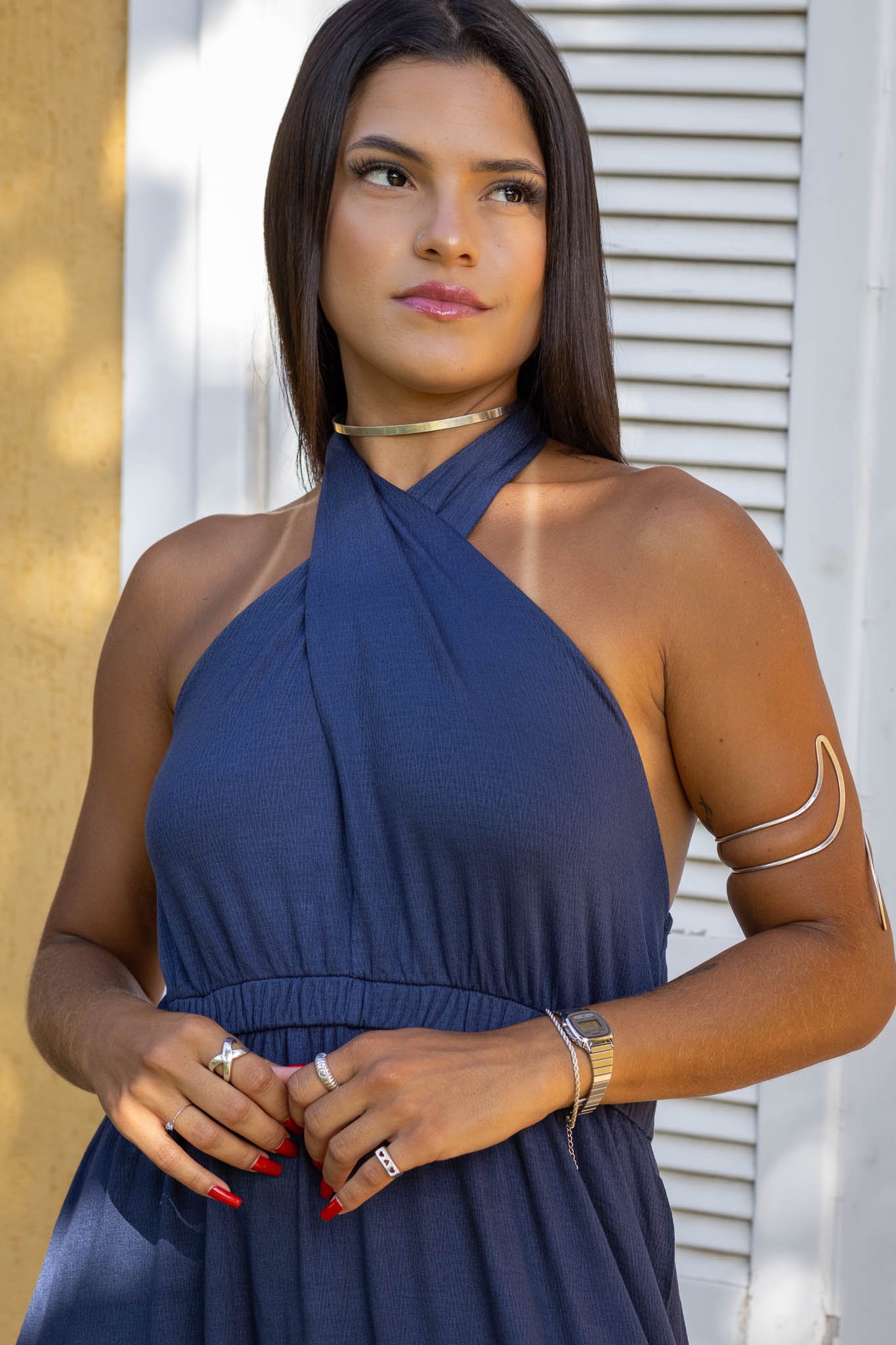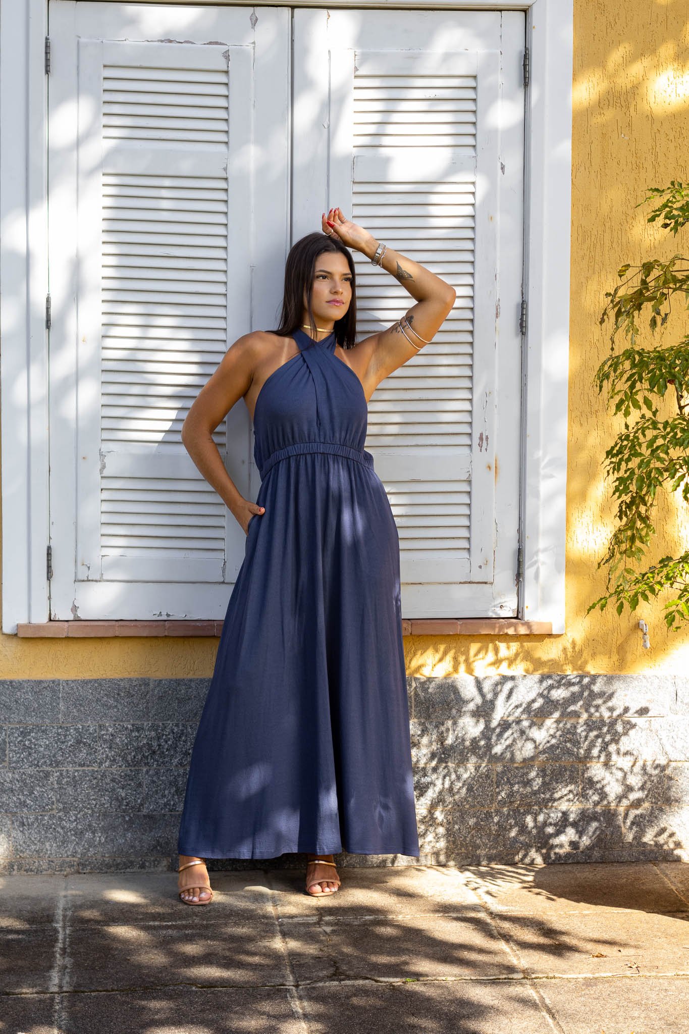 Descubra a elegância atemporal do Vestido Hortênsia, uma peça midi confeccionada em suave malha vicenza. Com suas alças que permitem amarrações versáteis, você pode optar por um estilo clássico ou criar um look moderno e cruzado, garantindo um ajuste perfeito que realça sua figura com conforto.
