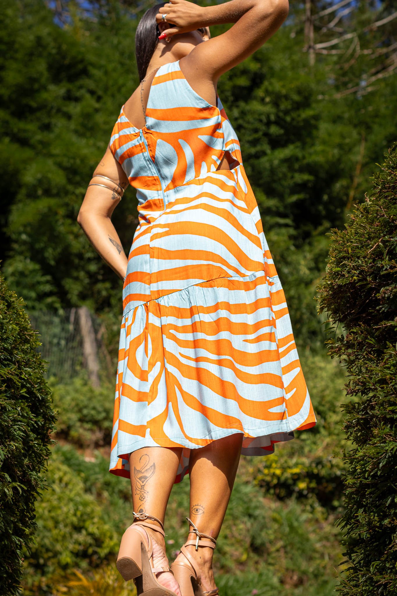 Vestido Suyane Midi em viscose com zíper nas costas e fenda lateral