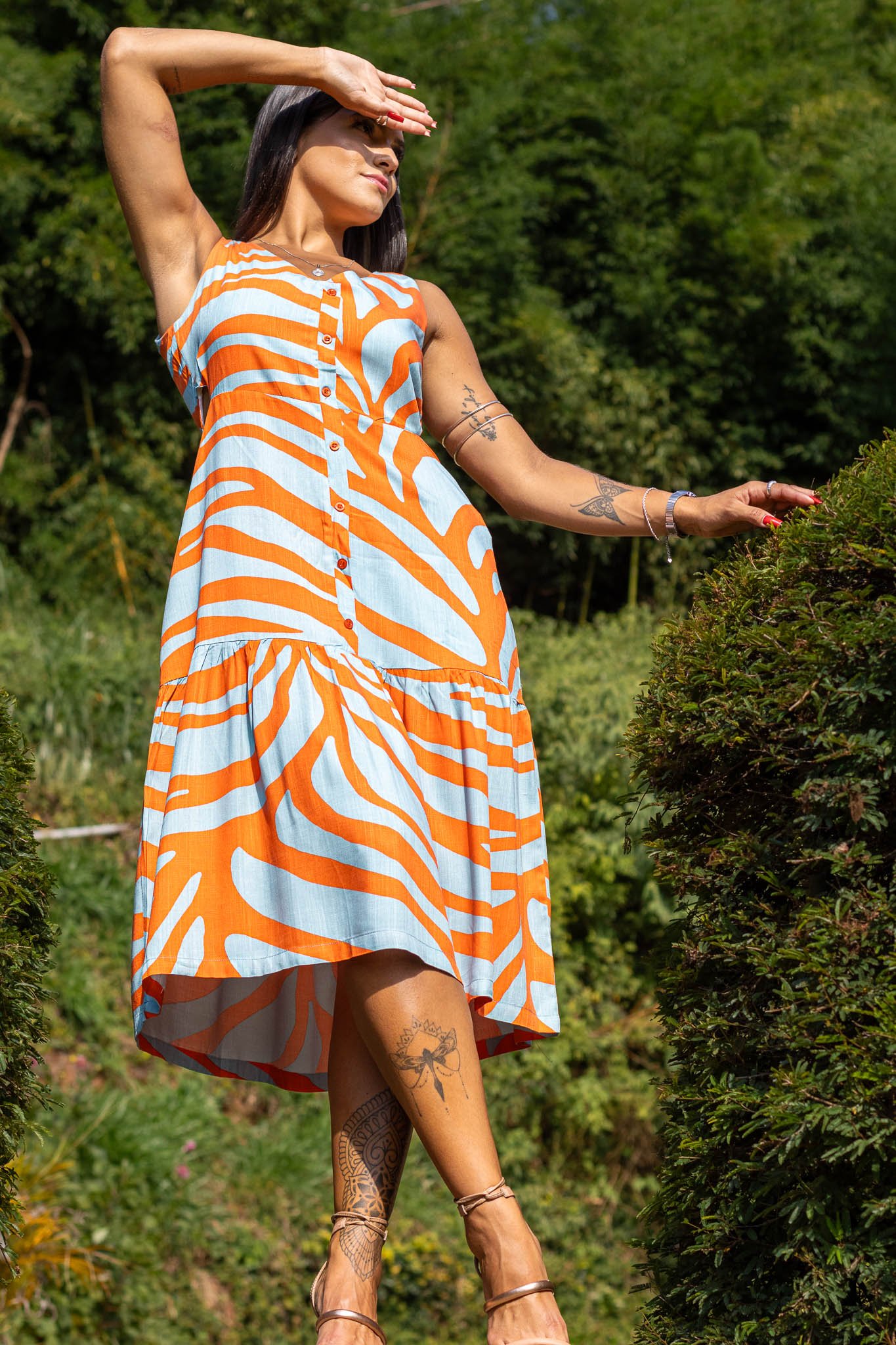 O tecido de viscose proporciona um caimento fluido e confortável, ideal para aquelas que desejam se sentir leves e estilosas ao mesmo tempo. O zíper nas costas facilita o vestir, enquanto a fenda lateral adiciona um toque de ousadia e movimento, permitindo que você exiba suas pernas com graça.